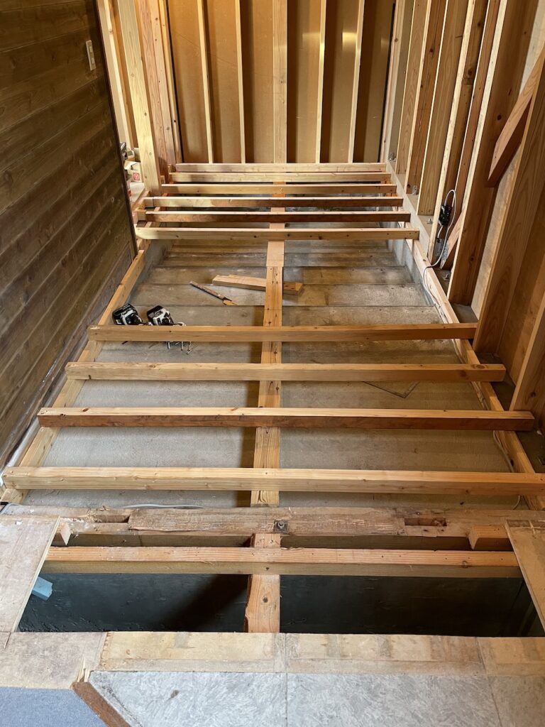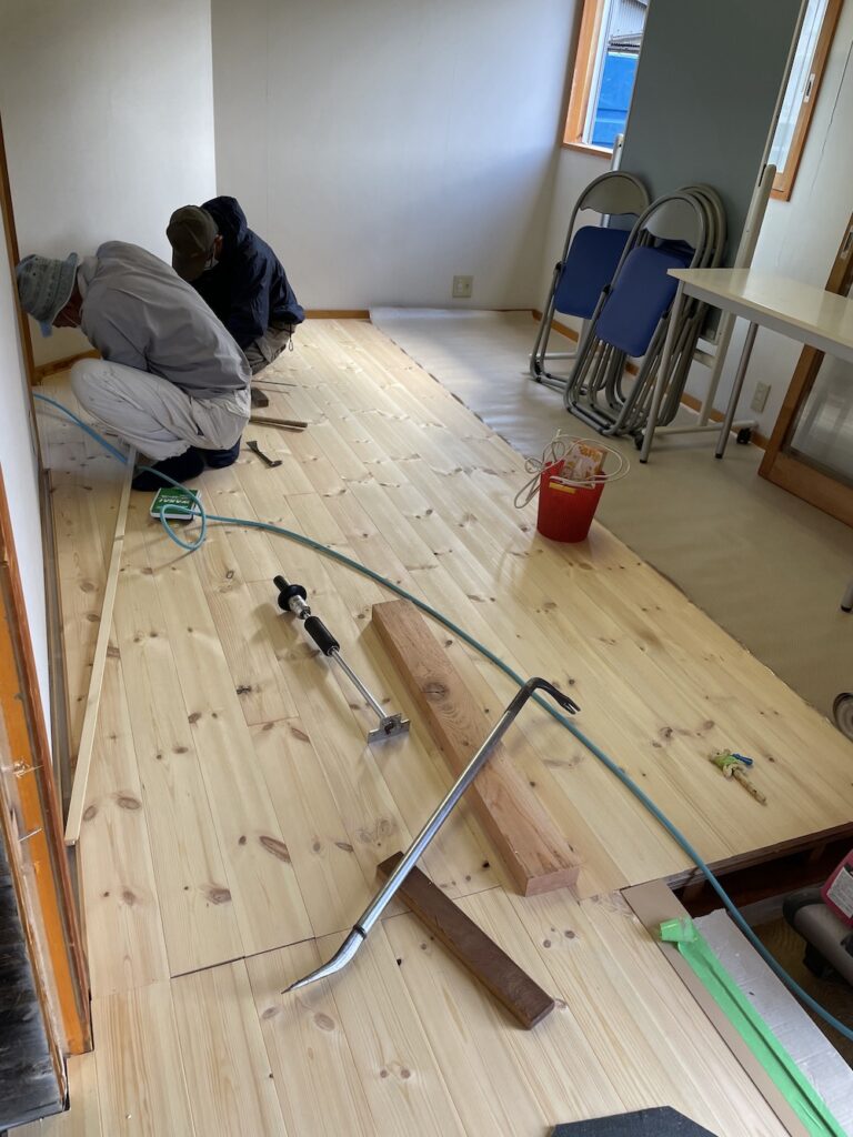 現場 床仕上げ 2021年2月7日 2021年2月7日 hiroshi この日は床を仕上げていきます。 今まで屋外だったエントランス部 大引、根太を上げます。(画像は反対方向から撮影しています) 鋼床造りではないので、下地コンパネのジョイントには気密テープを張ってます。 この部屋はミーティングルームです↓ 続きは後ほど。 Facebook postLINE