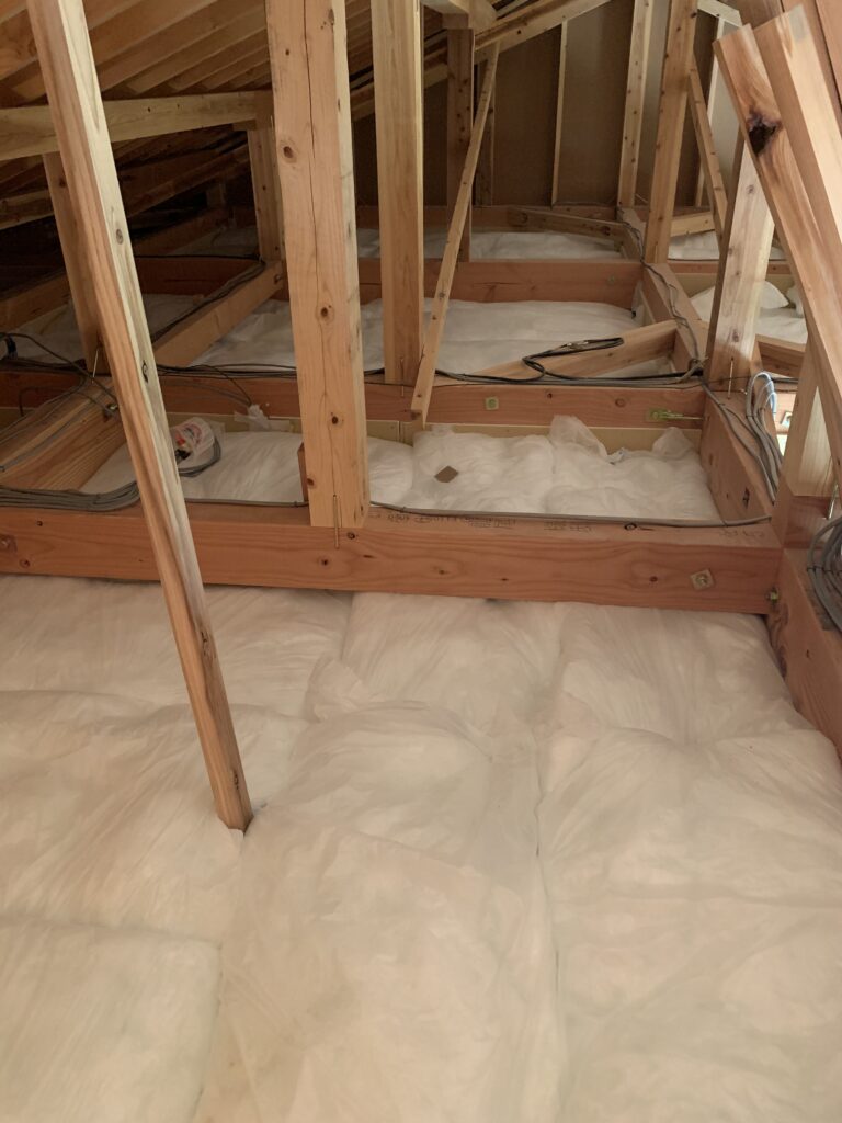 外壁部分は桁、梁下端まで断熱材が入っています。